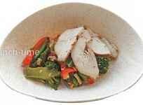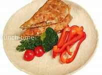 грудка куриная, яйцо, кунжут, капуста брокколи, болгарский перец, совый соус, чеснок, растительное масло