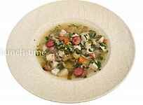 рассольник с курицей и копчёными охотничьими колбасками